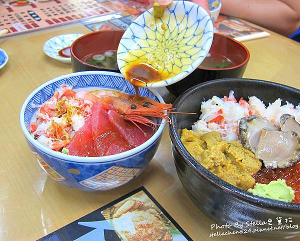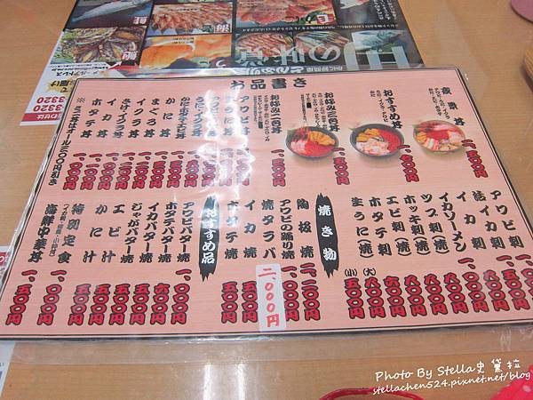 沿路上餐廳前擺放的海鮮丼飯照片看起來都好可口唷!!